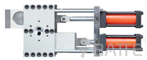 熔體擠出換網(wǎng)器是一個包括一個或多個濾網(wǎng)的手動或自動切換裝置,用于在塑化材料流過濾網(wǎng)時把外來顆粒和雜質(zhì)過濾掉。過濾網(wǎng)由一個合金多孔板支承,多孔板安裝在板式或柱式的載體上,載體可以被移動從而在一個系統(tǒng)的工作位置和離線非工作位置之間切換。